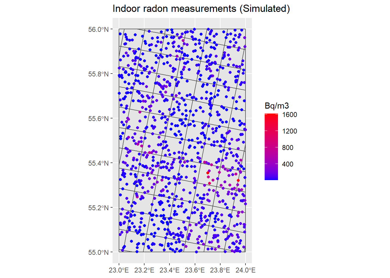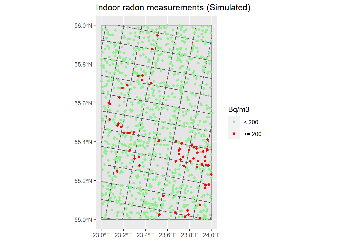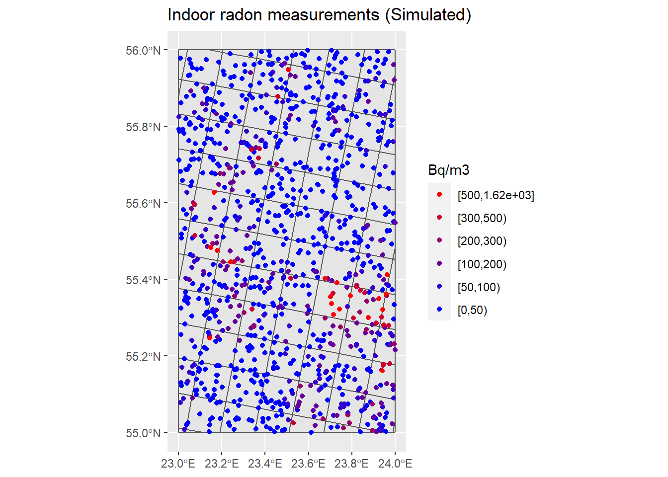 ggtitle("Indoor radon measurements (Simulated)")