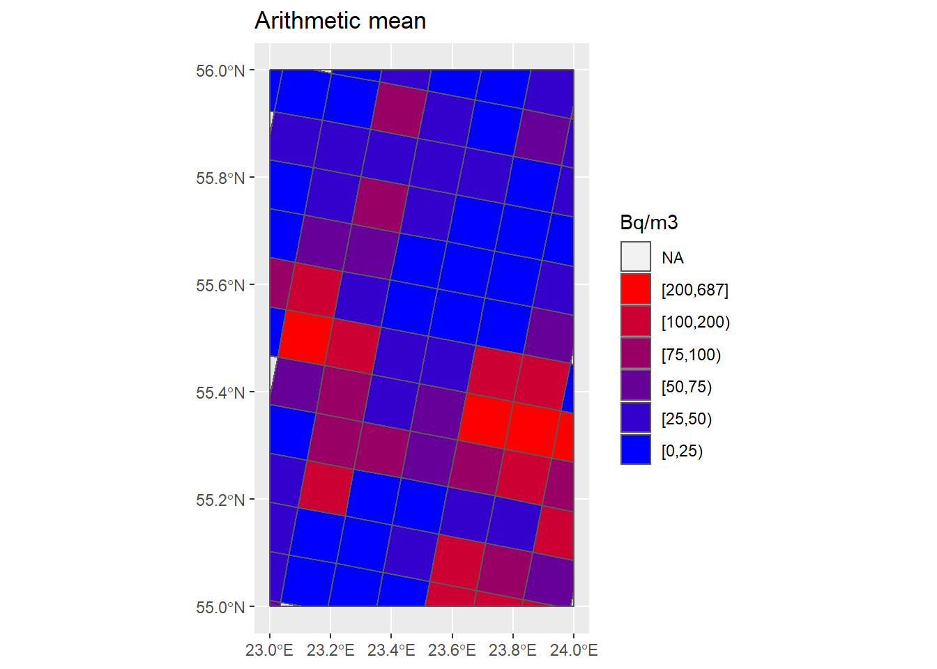 # Based solely on the indoor radon measurements in each grid of 10x10 km,